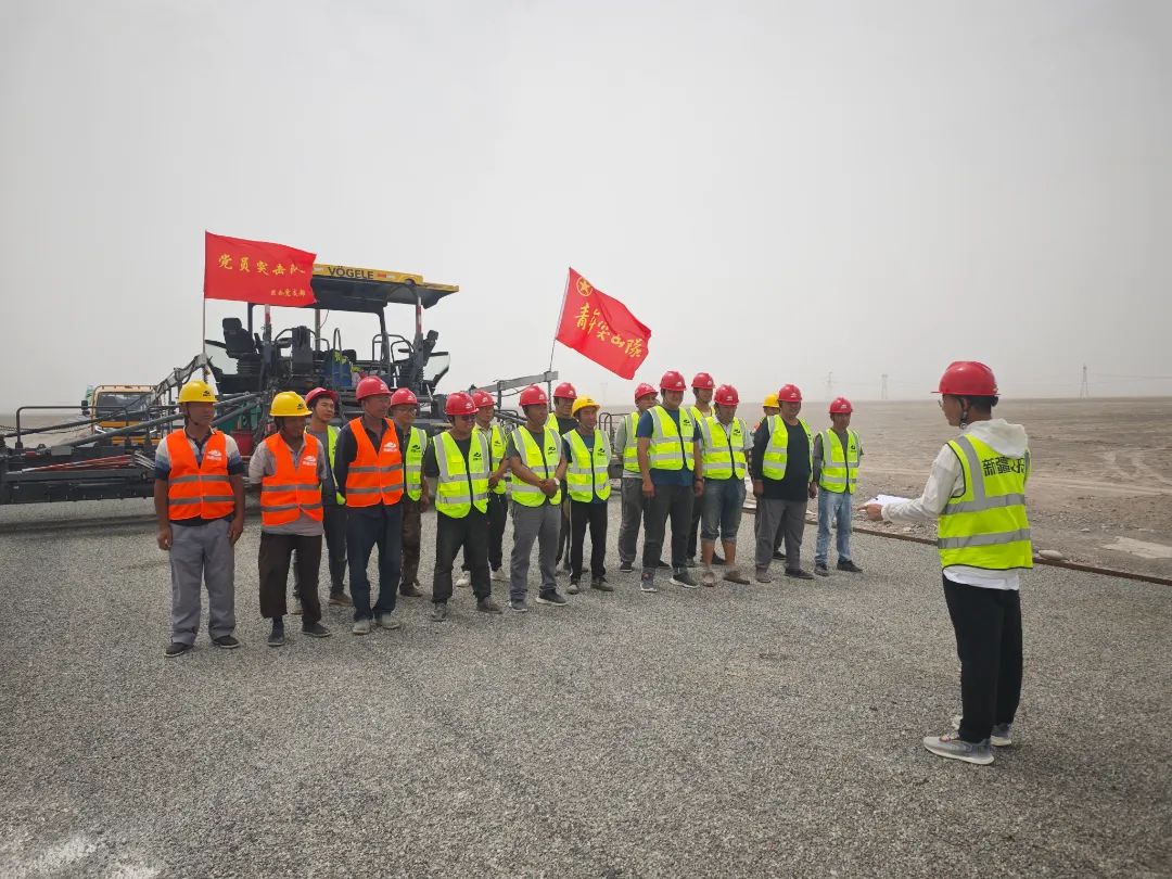项目党支部积极践行习近平新时代中国特色社会主义思想以及党的二十大精神,以交投集团“铸道”党建品牌工作法为引领,秉持“以党建凝心铸魂、以品牌聚力赋能”的理念,严格落实“第一议题”制度,精心组织理论学习,常态化举行政治例会,并通过举办形式多样、内容丰富的主题党日及支部联建活动,采用“首学一小时”、观看主题电影等多种形式筑牢思想防线,致力打造“清廉项目”。借主题教育之机,项目党支部精准把握“围绕生产抓党建,抓好党建促发展”的思路,设立党员责任区,明确党员在特定区域的职责与任务,以保障工程质量和进度;组建先锋队与突击队,在遭遇施工难题时冲锋在前,在水稳基层、沥青面层试验段摊铺中,党员突击队、青年突击队迅速响应,勇挑重担,积极统筹整合各方资源,为项目的有力推进注入了磅礴伟力。