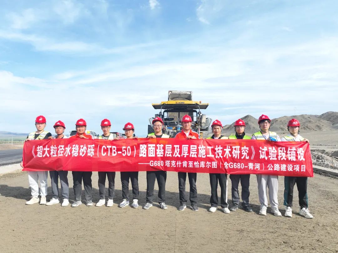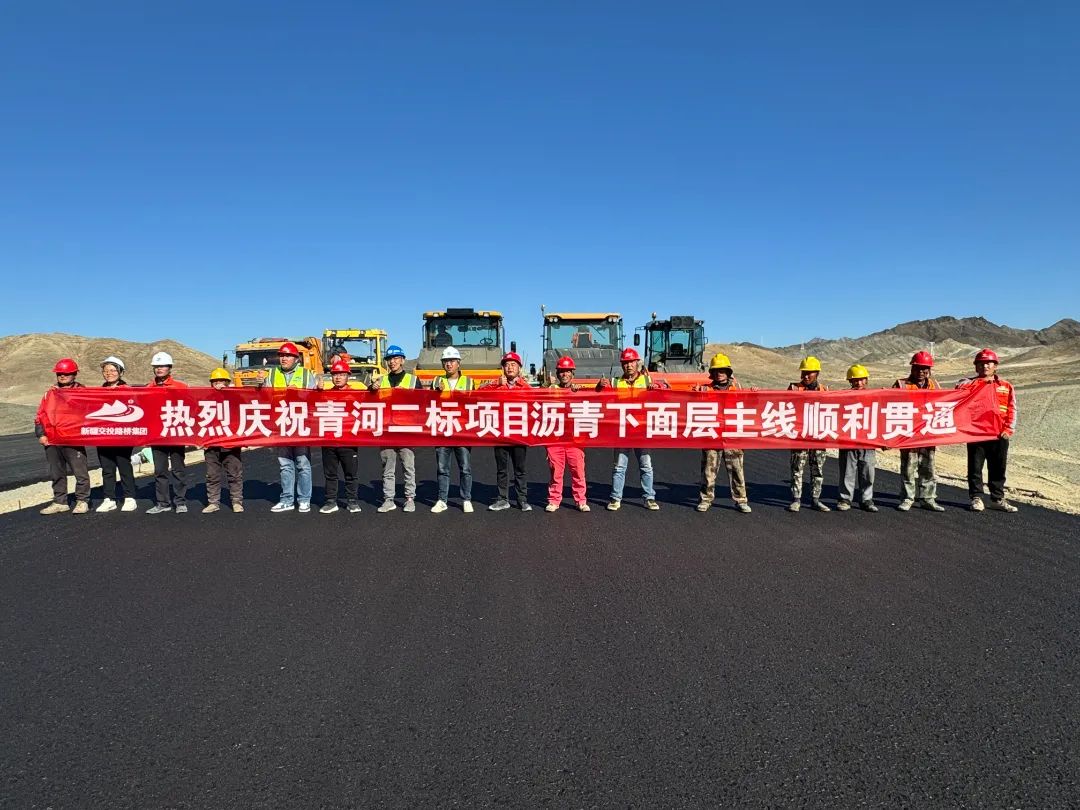 青河二标项目全力以赴,为实现年度目标奋力前行。一是项目部精心谋划合理布局,充分考虑项目实际情况,科学地施工组织和资源调配,制定详细的施工方案。青河二标施工路面全长27.158公里,设计厚度8cm,设计宽度22.5m。10月10日,青河二标完成了全线沥青下面层施工任务,全线主体工程基本完成,标志着项目取得阶段性胜利。项目团队充分发扬“特别能吃苦、特别能战斗、特别能奉献”的精神,以“5+2”的工作模式投入到路面施工任务中。在材料运输、路面摊铺、压实等各个环节,严格执行各项施工工艺和技术标准。历经3个月,圆满完成路面施工目标任务,为后续附属设施建设等工作赢得了宝贵时间。二是定期召开成本分析会,对项目成本进行细致梳理和深入分析。严格控制各项费用支出,优化资源配置,确保项目在预算范围内高效推进。三是大力投入科研,青河二标联合新疆交通规划勘察设计研究院有限公司,在青河二标 K58+000~K58+500试验段共同开展《超大粒径水稳砂砾(CTB-50)路面基层及厚层施工技术研究》科研课题。该课题有效解决了集料粒径受限、压实厚度观念滞后、级配结构不合理等施工难题,在加快工程进度、降低施工成本、提升路面基层质量、降低碳排放等方面作出了重要贡献。